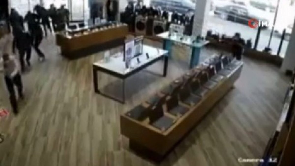 Görüntülerde saldırının şiddetiyle mağazada bulunan vatandaşların büyük panik yaşadığı, can havliyle kaçıştığı görüldü.