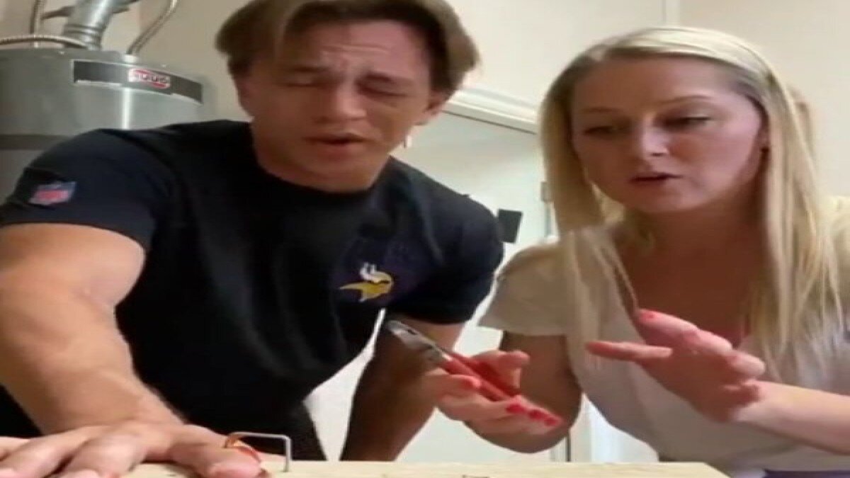 Tahta ve zımba ile bir düzenek hazırlayan genç adamın zımba şakası, eşine korku dolu anlar yaşattı.