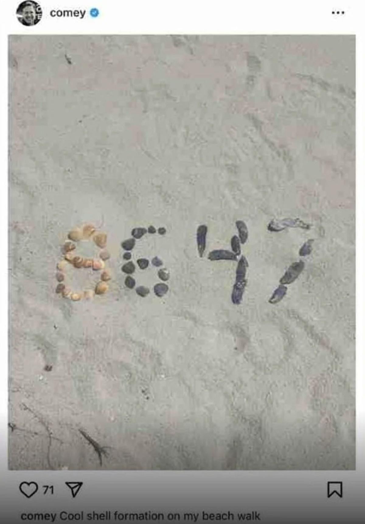 Federal Soruşturma Bürosu (FBI) Direktörü James Comey, sosyal medya hesabından, sahilde kumların üzerine deniz kabuklarıyla yazılmış '86 47' sayılarının fotoğrafını "Sahil yürüyüşünde karşılaştığım ilginç bir deniz kabuğu dizilimi." notuyla paylaştı.