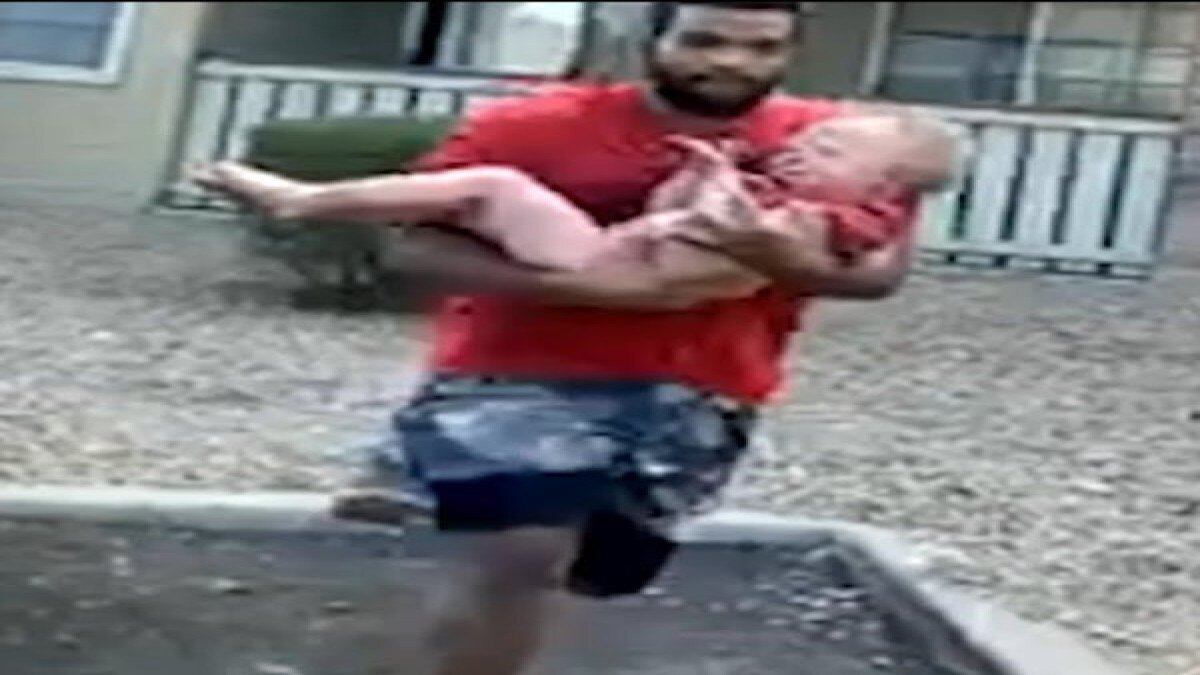 Yanan binanın içerisinde mahsur kalan anne, çocuğunu kurtarmak için balkondan aşağı bıraktı. O sırada çocuğun aşağı düştüğünü gören 28 yaşındaki Phillip Blanks çocuğu yakalamak için koştu.