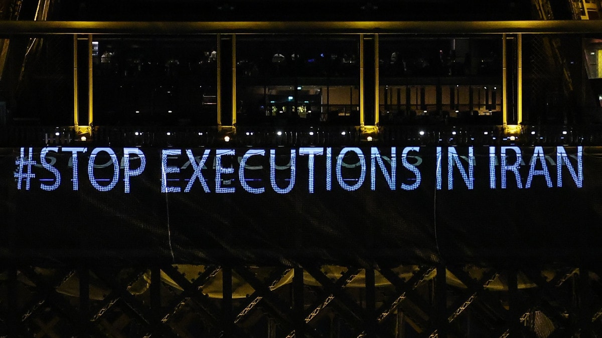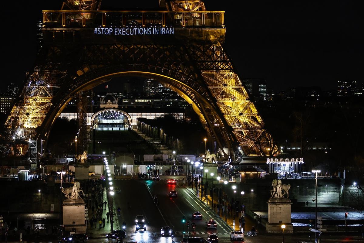 Fransa’nın başkenti Paris’te yer alan dünyaca ünlü Eyfel Kulesi’ne Paris Belediyesi tarafından “İran'da idamları durdurun” sloganları yansıtıldı.