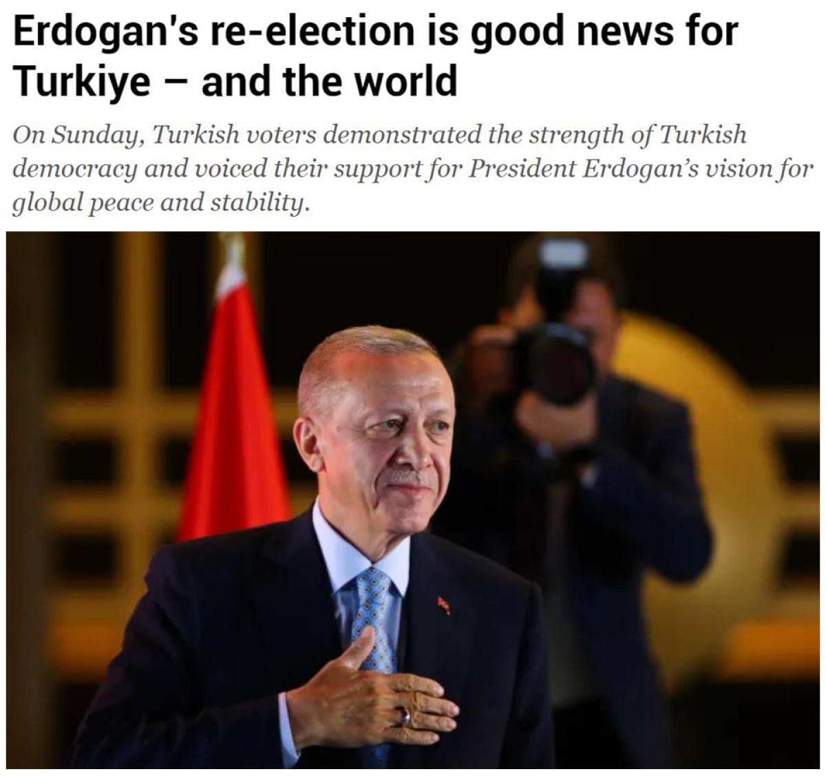 Türk seçmenlerin Cumhurbaşkanı Recep Tayyip Erdoğan'a 5 yıl daha millete liderlik etmesi konusunda güvenmesi, bölgesel istikrar ve küresel barış için son derece iyiye işaret ediyor.
