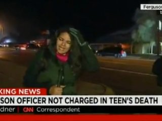 Olayların merkezi Ferguson’dan canlı yayın yapan CNN muhabiri Sara Snider’in başına ise talihsiz bir olay geldi. Protestocuların attığı bir taş, muhabirin başına isabet etti.