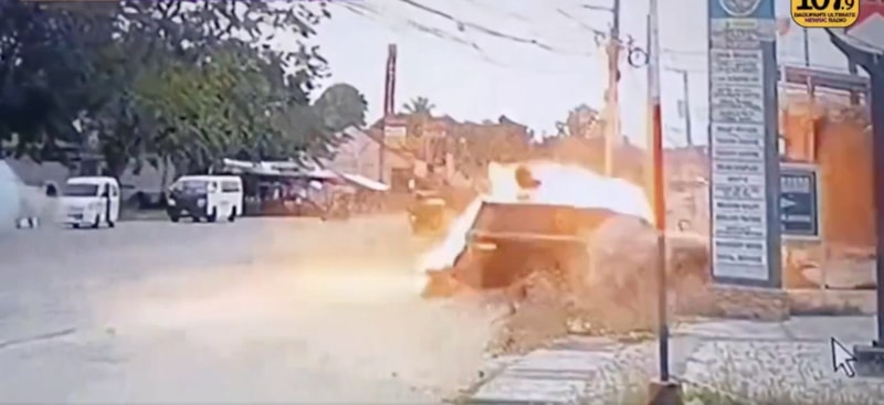Güvenlik kamerası görüntülerinde, bombanın belediye başkanının aracına isabet ettiği ve yoğun bir duman bulutu oluştuğu görülüyor.