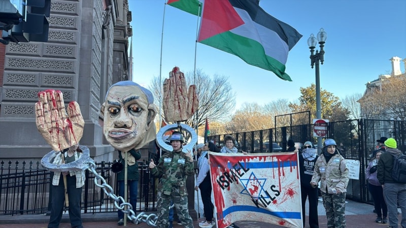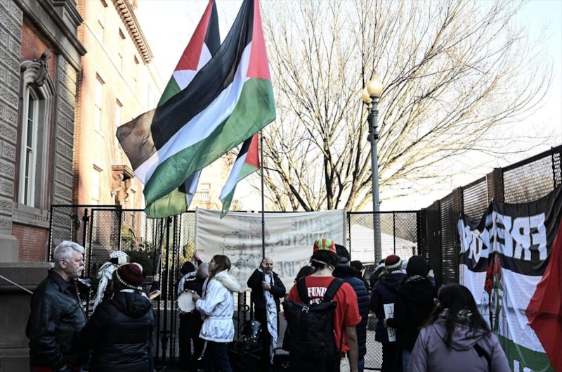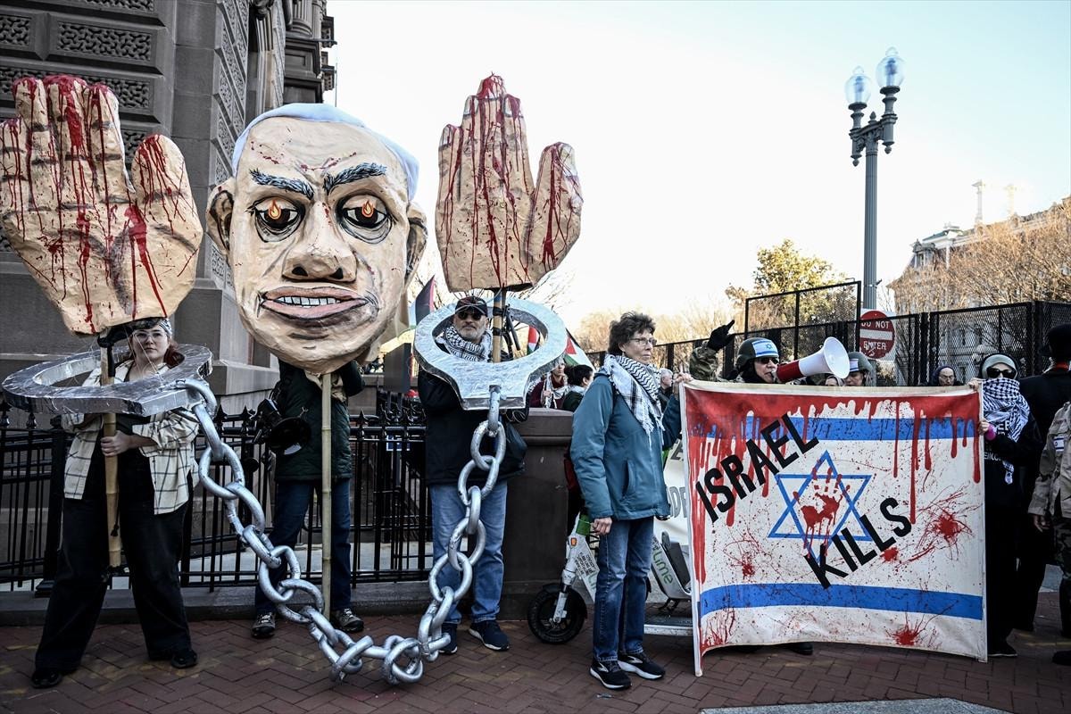 ABD'nin başkenti Washington'daki Filistin destekçilerinin gösterisi, ABD Başkanı Donald Trump ile İsrail Başbakanı Binyamin Netanyahu'nun Oval Ofis'te görüştükleri esnada gerçekleştirildi.