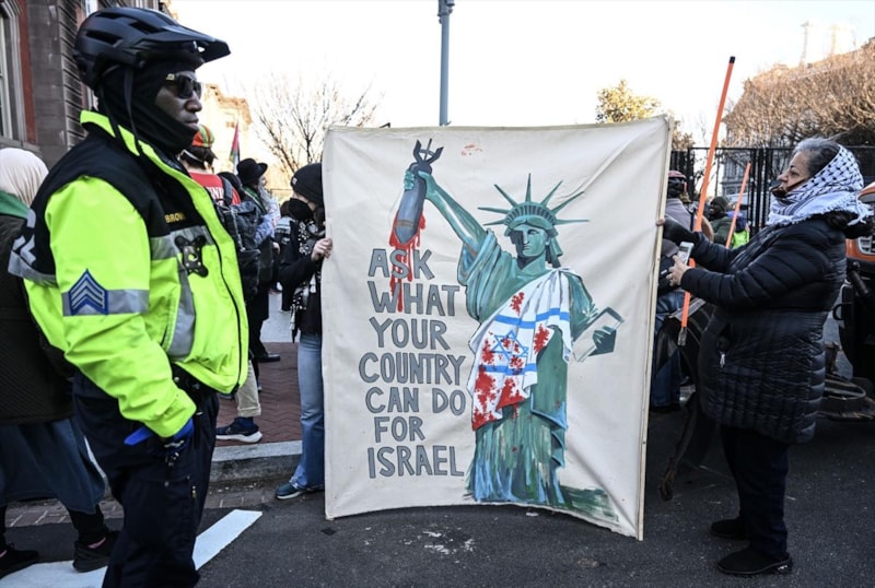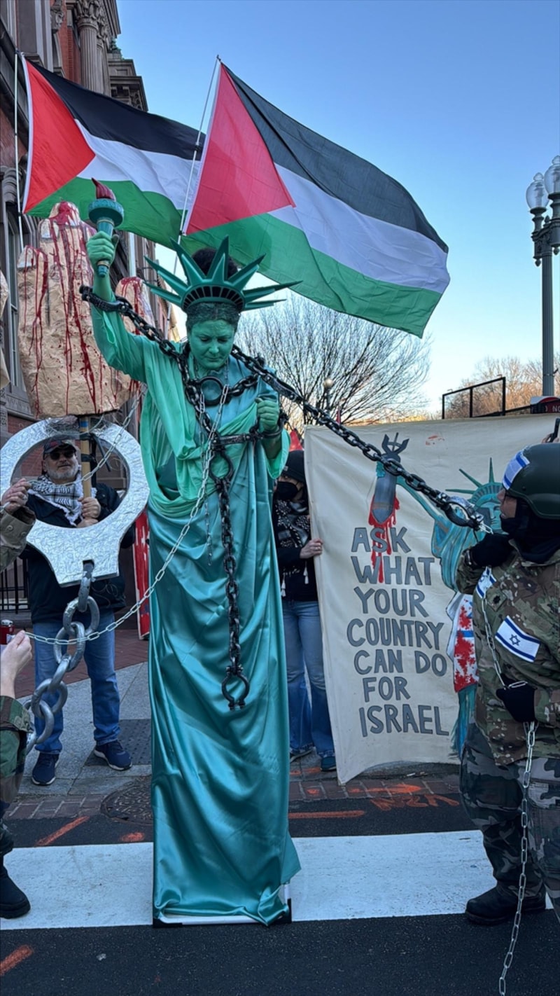 AA'ya konuşan göstericilerden Matthew Watterman, ABD'nin, 15 aydır İsrail'in Gazze'deki soykırımını, onlarca yıllık işgalini ve Filistin halkına karşı işlediği savaş suçlarını desteklediğini söyledi.