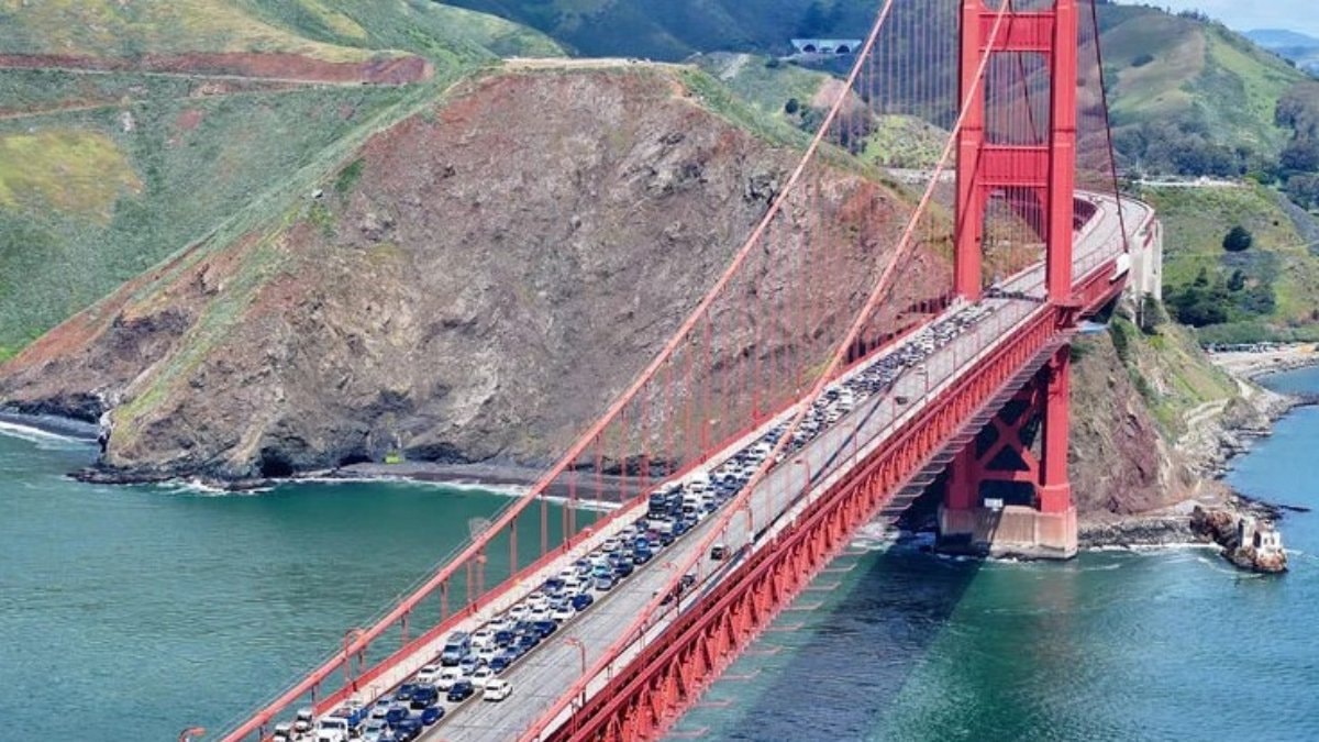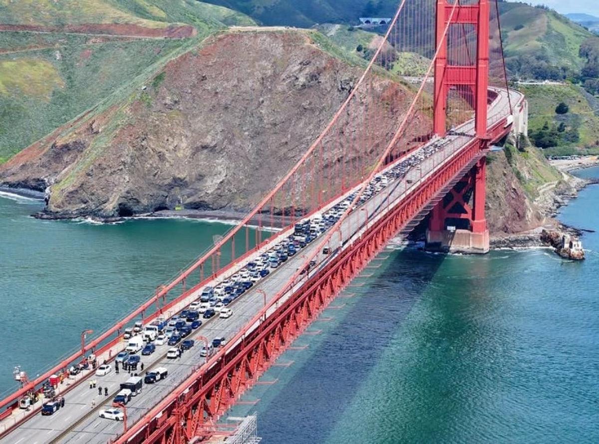 Sabahın erken saatlerinde ABD'nin San Francisco kentinde bulunan ve sembol haline gelen Golden Gate Köprüsü, Filistin'e destek amacıyla toplanan onlarca göstericiye ev sahipliği yaptı.