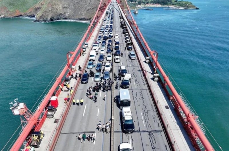 ABD'de San Francisco'daki Golden Gate Köprüsü, İsrail'in Gazze'ye yönelik saldırıları sırasında yaşanan insanlık dramına dikkat çekmek isteyen Filistin destekçisi göstericiler tarafından trafiğe kapatıldı.