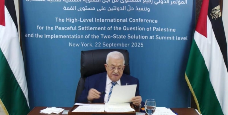 Filistin Devlet Başkanı Mahmud Abbas, BM Genel Merkezi'nde düzenlenen "Filistin Meselesine Çözüm Bulunması ve İki Devletli Çözümün Hayata Geçirilmesi Konulu Yüksek Düzeyli Uluslararası Konferansı"na ABD’nin vizesini iptal etmesi nedeniyle video mesaj yoluyla katıldı.