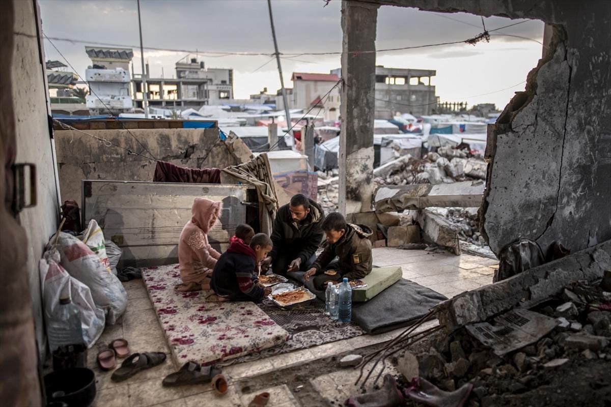 Enkaza dönen Gazze'de her köşe başında trajik görüntüler ortaya çıkıyor. Filistinliler, yıkıntıların arasında iftarlarını yapıyor.