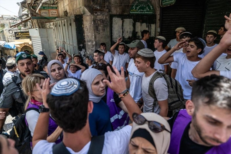 Her yıl düzenlenen ve işgalin meşrulaştırılmaya çalışıldığı “bayrak yürüyüşü”, yine tansiyonu yükseltti. On binlerce İsrailli, ırkçı ve provokatif sloganlarla Şam Kapısı’ndan geçerek Eski Şehir’e yürüdü. İsrail polisi, bu yürüyüş öncesinde Doğu Kudüs’te sıkı güvenlik önlemleri aldı, geçiş noktalarına bariyerler kurarak Filistinlilerin hareket alanını daralttı.