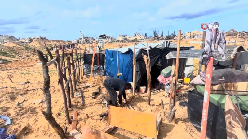 Gazze Şeridi'nde yaşadıkları bölgelere dönen Filistinliler, İsrail saldırılarında yıkılan evlerinin enkazının yanına çadır kurdu.