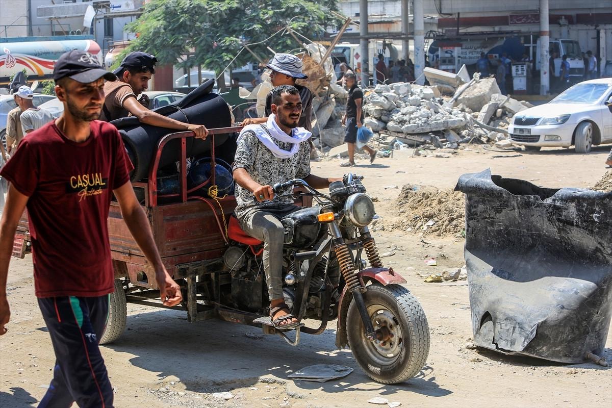 Bölgeden gelen görüntülerde, başta çocuk ve kadınlar olmak üzere Han Yunus'un doğusundaki Filistinlilerin bir kez daha zorla yerlerinden edildikleri görülüyor.