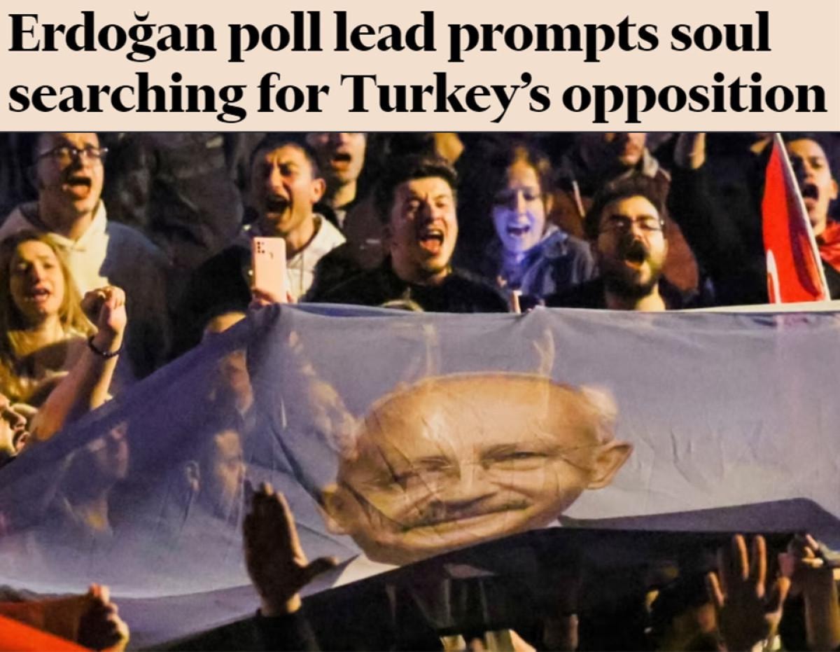 İngiltere merkezli Financial Times gazetesi, Cumhurbaşkanı Recep Tayyip Erdoğan'ın sandıklardan birinci çıkmasının muhalefette iç değerlendirmeye yol açtığını yazdı.