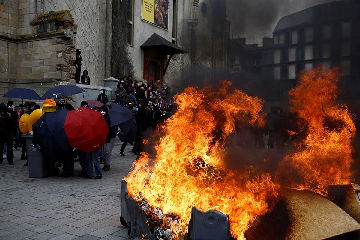 Hükümetin tartışmalı reformuna karşı ülke genelinde Rennes ve Nice'in yanı sıra farklı kentlerde 11'inci kez kitlesel gösteriler başladı. Reform, emeklilik yaşını 62'den 64'e yükseltecek.