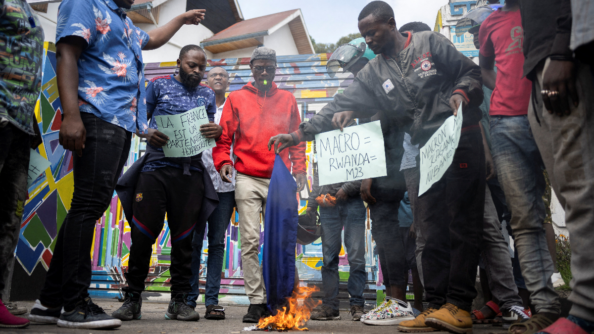 Demokratik Kongo Cumhuriyeti'nin Goma şehrinde, Macron'un planlanan ziyaretine karşı çıkanlar, Fransa bayrağı yaktı, Paris yönetiminin politikasına "hayır" dedi.