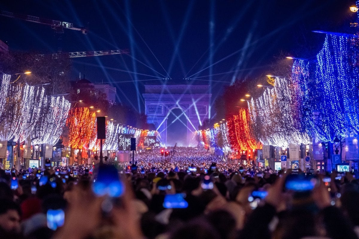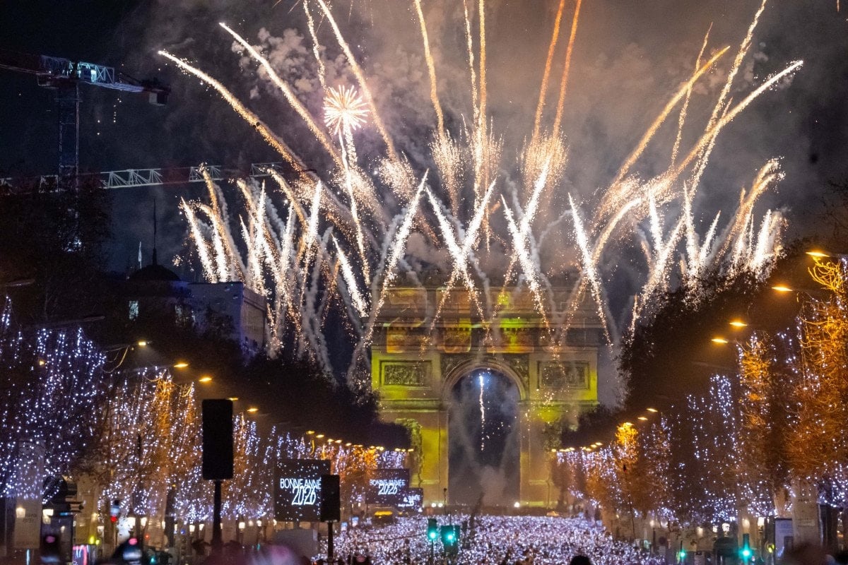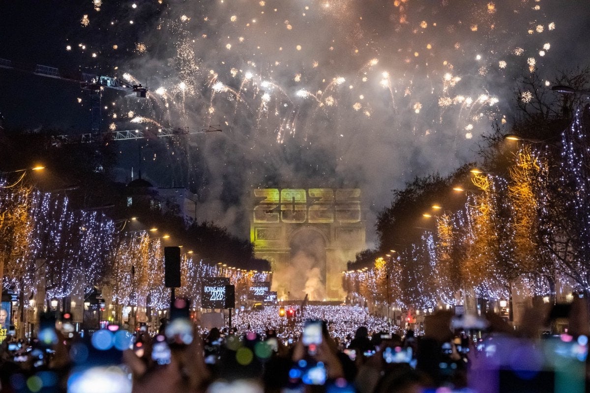 Yeni yılı karşılamak için Paris’teki dünyaca ünlü Şanzelize Caddesi’nde toplanan binlerce kişi, Arc de Triomphe (Zafer Takı) Anıtı’na yansıtılan video görüntüleri ve ışık gösterilerinin yanı sıra Eyfel Kulesi çevresindeki etkileyici ışık ve havai fişek gösterileriyle keyifli anlar yaşadı.
