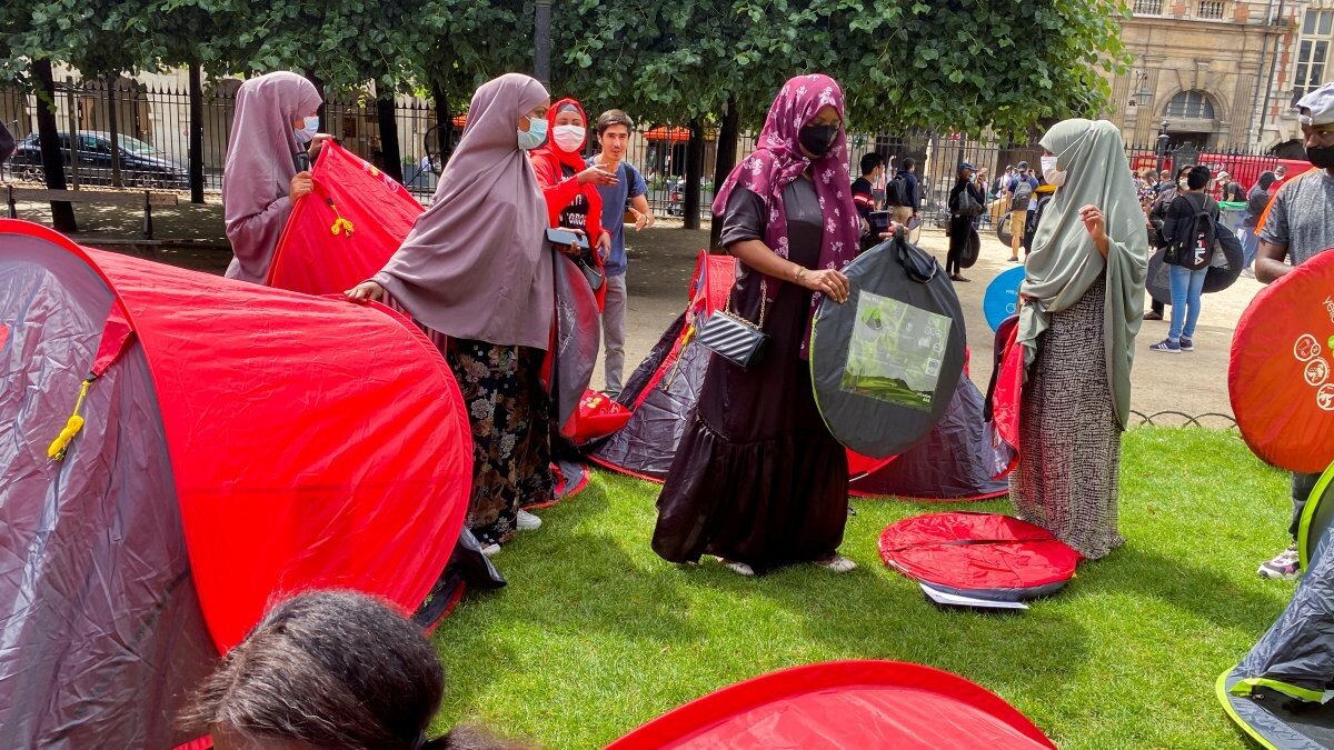 Fransa'nın başkenti Pariste, aralarında çocuklu aileler ile refakatsiz çocukların da bulunduğu 400 evsiz kişi “onurlu ve kalıcı barınma çözümü” isteğiyle, Vosges Meydanında çadır kurdu.