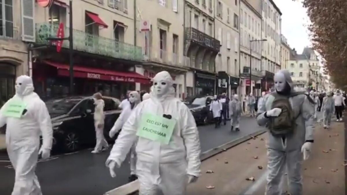 Dordogne bölgesine bağlı Perigueux'ta eylemciler, ilginç kostümleriyle bilim kurgu temalı yürüyüş gerçekleştirdi.