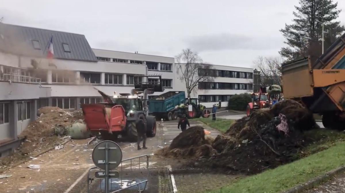 Bretonya Bölgesel Konseyi merkezine gelen çiftçiler, buradaki otoparka gübre döktü ve resmi evrakları saçtı.