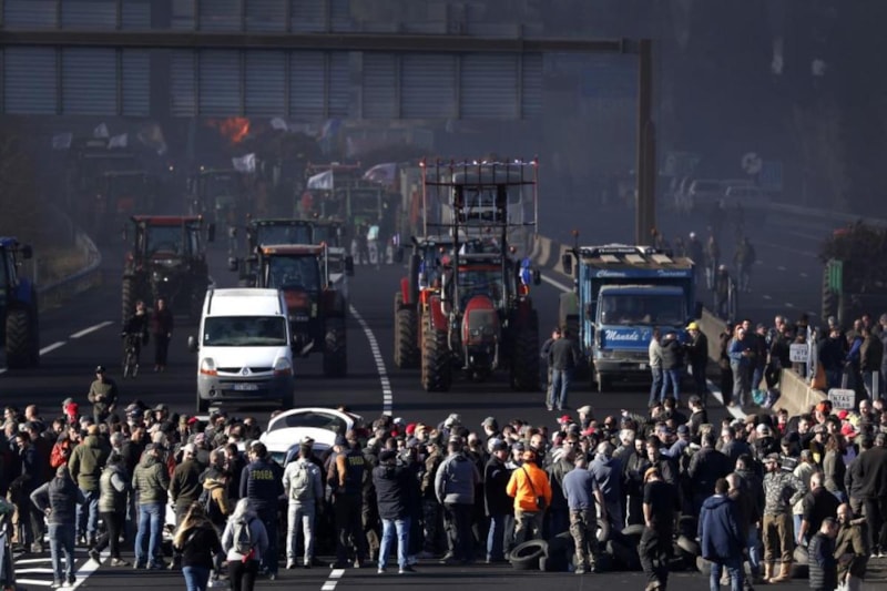 Hükümete seslerini duyurmaya çalışan çiftçiler, kolilerle getirdikleri ithal meyveleri otoyola saçıp ateşe verdi. Bazıları ise kestikleri ağaç dallarını yola attı. Ülke genelinde gösterilerini sürdüren çiftçiler, ayrıca kuzeydeki Lille yakınlarında A1 otoyolu ile doğudaki Strasbourg kenti yakınlarında M35 otoyolunu da traktörlerle ablukaya aldı.