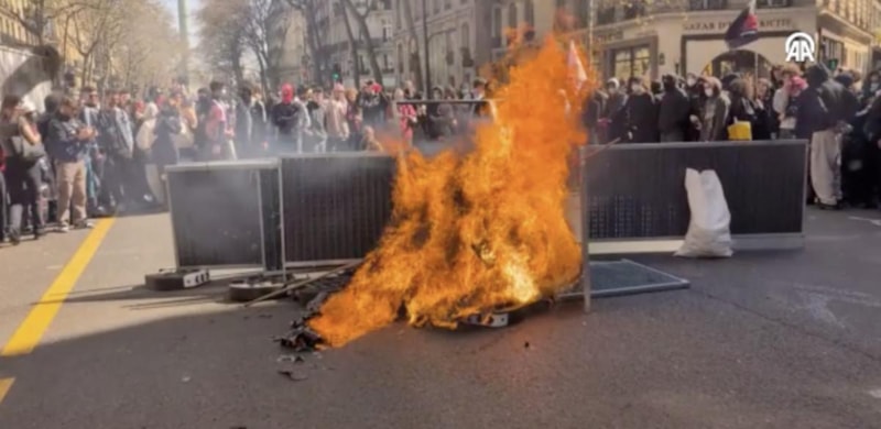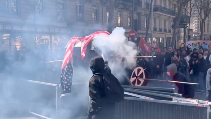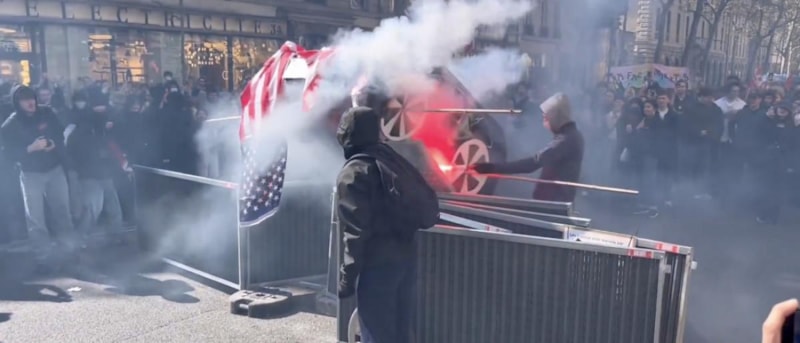 Hükümetin eğitim alanında bütçe kesintisi yapmasının ardından Paris'te sokağa dökülen marjinal gruplar, ABD bayrağı ve Tesla maketini ateşe verdi. Hükümet karşıtı sloganlar atan gruba, Fransız polisi sert şekilde müdahale etti.