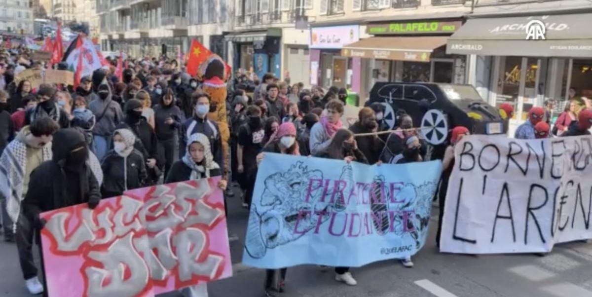 Yüzlerini maske ile kapatan binlerce öğrenci, Paris'te sokağa dökülerek şiddet eylemlerine başladı.