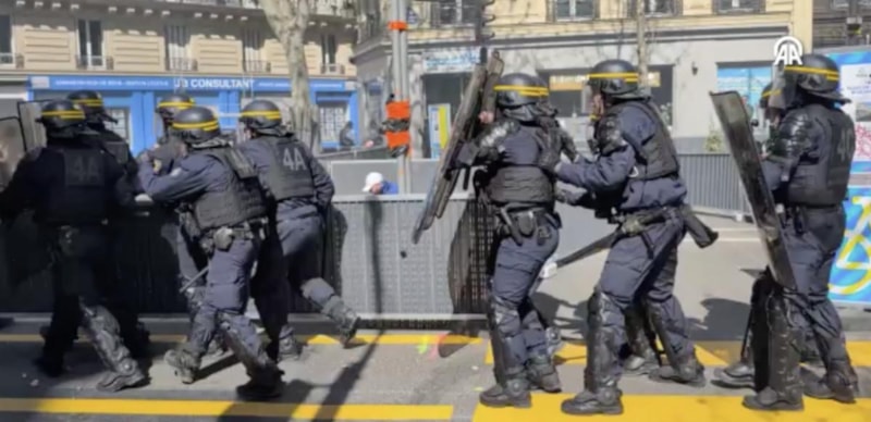 Kendilerine müdahale eden polislere de saldırgan marjinal gruplar, Fransız polisinin sert müdahalesiyle karşı karşıya kaldı.