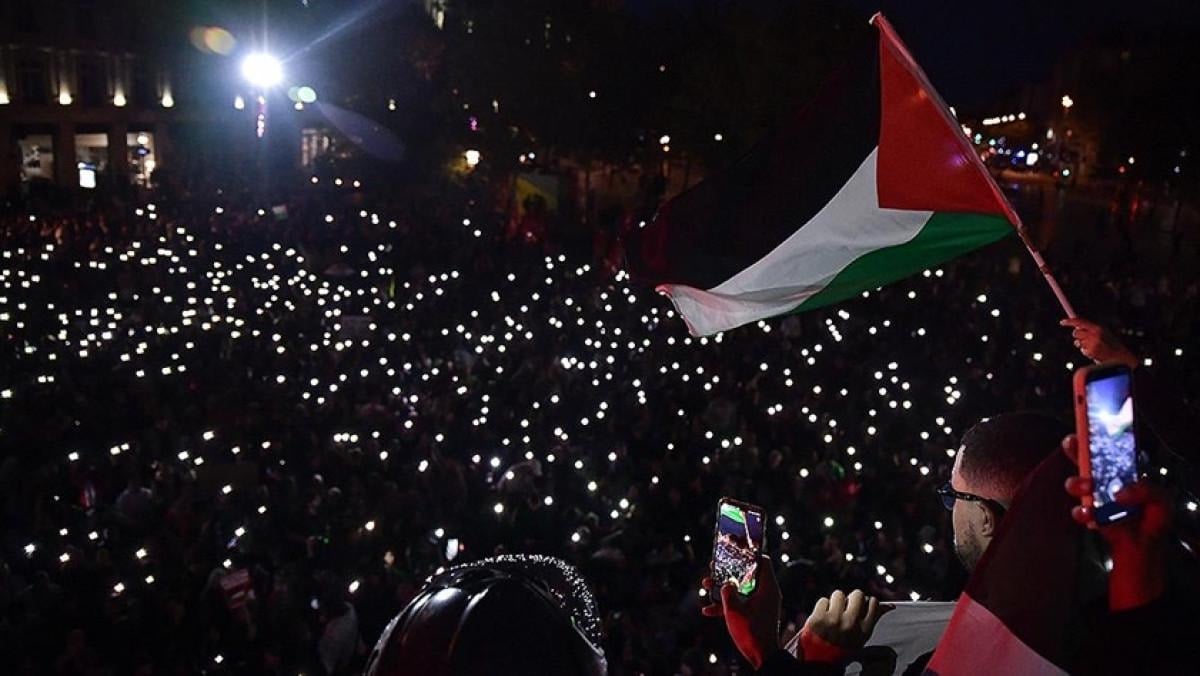 Fransa'nın başkenti Paris'te binlerce kişi, polis müdahalesi ve yağmura rağmen Filistin'e destek için kentin en önemli noktalarından Cumhuriyet Meydanı'nda bir araya geldi.