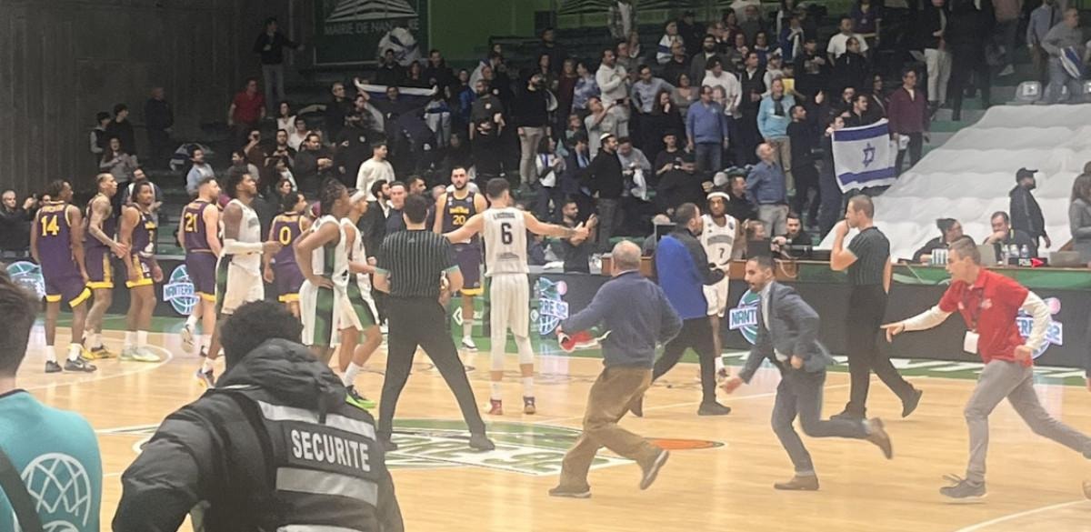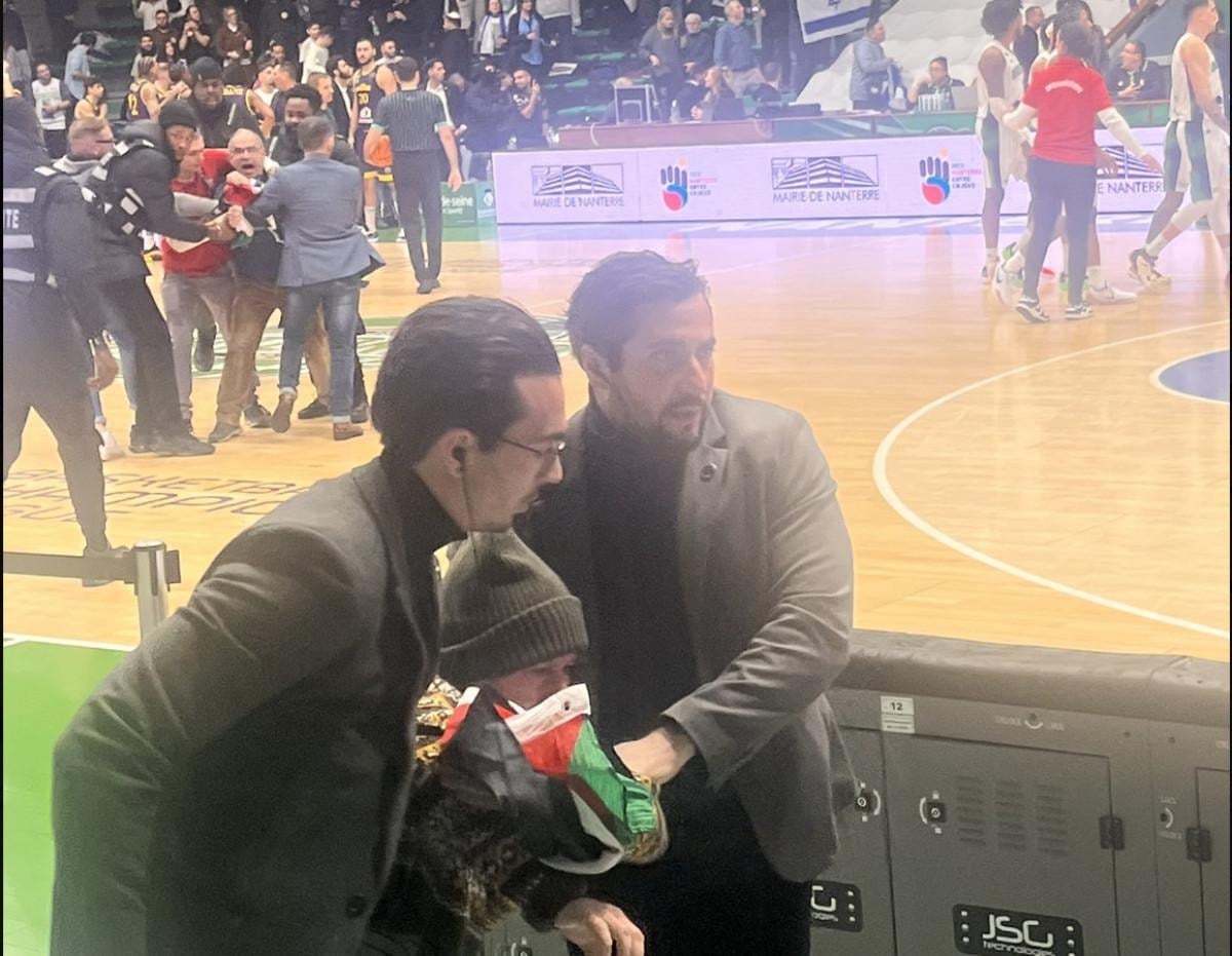 Fransız takımı Nanterre ile İsrail'in Hapoel Holon basketbol takımları arasında oynanan maç, müsabaka öncesi Filistin destekçileri tarafından protesto edilmişti.