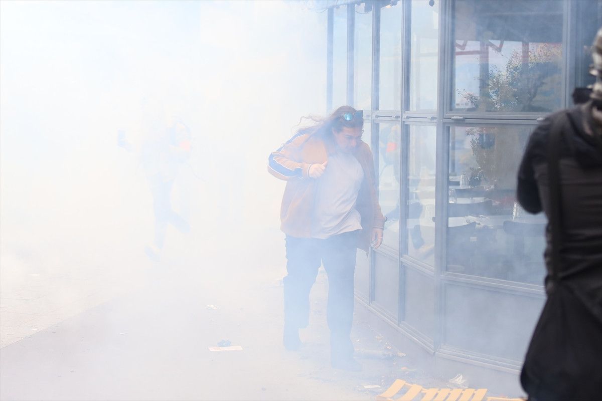 Göstericiler polise çeşitli cisimler fırlatıp ateşe verdikleri çöp kovalarıyla yolları kapatırken, polisler de eylemcilere biber gazı ve tazyikli suyla müdahale etmişti.