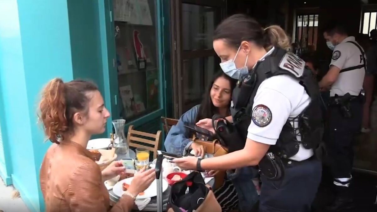 Kafelerde vakit geçiren Fransız vatandaşlar, kendilerine koronavirüs sağlık kartı soran polis ekipleriyle karşılaştı. Cep telefonlarındaki uygulama polise gösterildi.