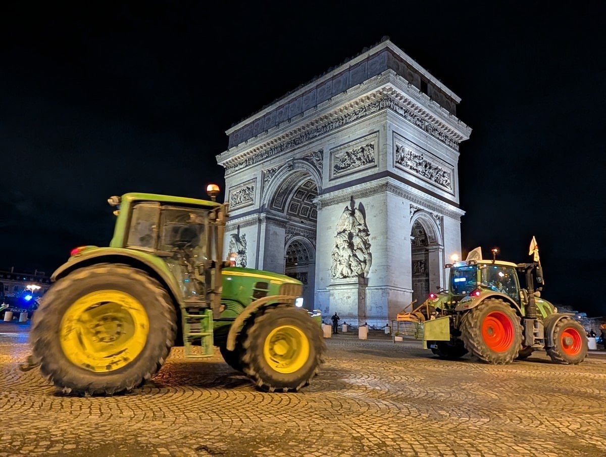 Çiftçi konvoyları, Champs-Elysees’deki eylemlerinin ardından Dışişleri Bakanlığı ve Ulusal Meclis binası önünde toplanan çiftçilerin yanına hareket edecek.