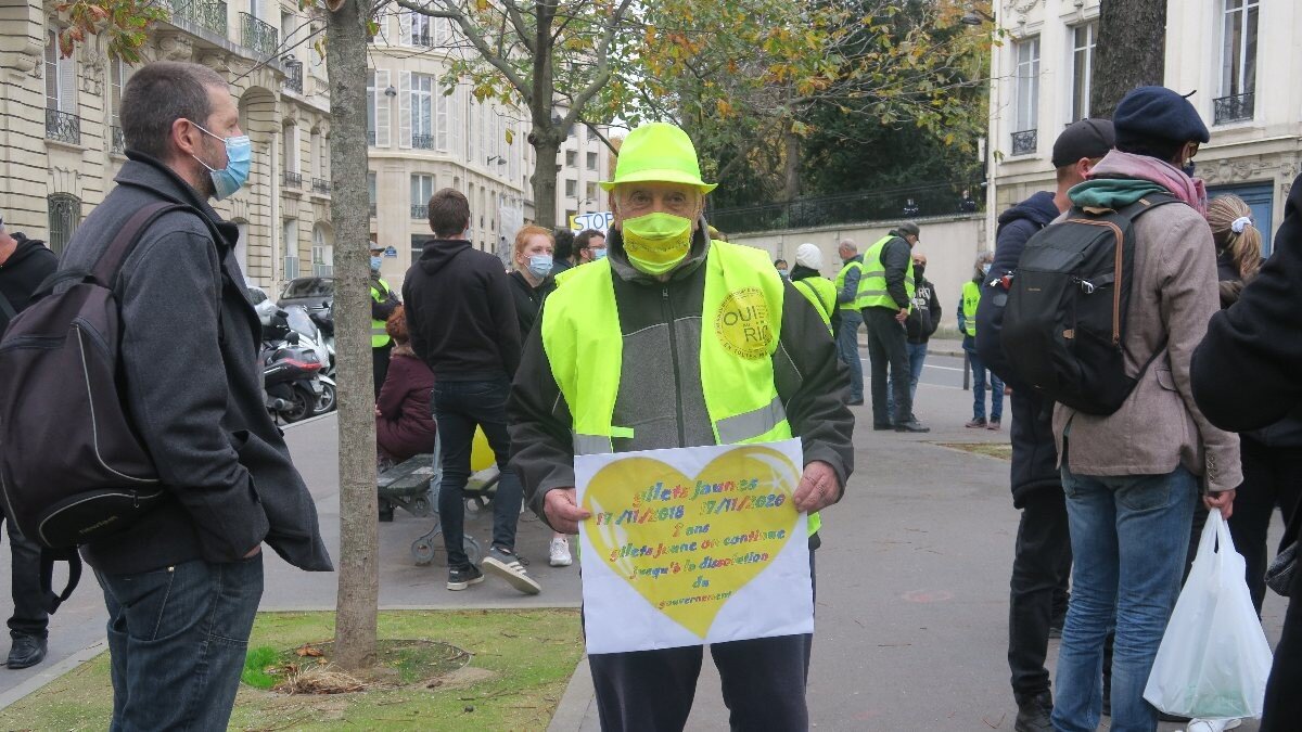 Sarı Yelekliler 17 Kasım 2018'de karbon vergisinin kaldırılmasını ve daha fazla sosyal adalet talep etmek amacıyla gerçekleştirdikleri protestoların başlamasının ikinci yıl dönümünde başkent Paris’te bulunan Ulusal Meclis yakınındaki meydanda bir araya geldi.