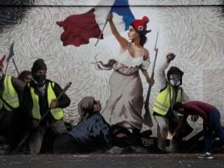 Haftalardır her hafta cumartesi günü devam eden protestolarda, bir sokağa Eugène Delacroix'in tablosu olarak bilinen 'Halka Yol Gösteren Özgürlük' temsilcisi kadın heykeli ve Sarı Yelekliler bir arada çizildi.