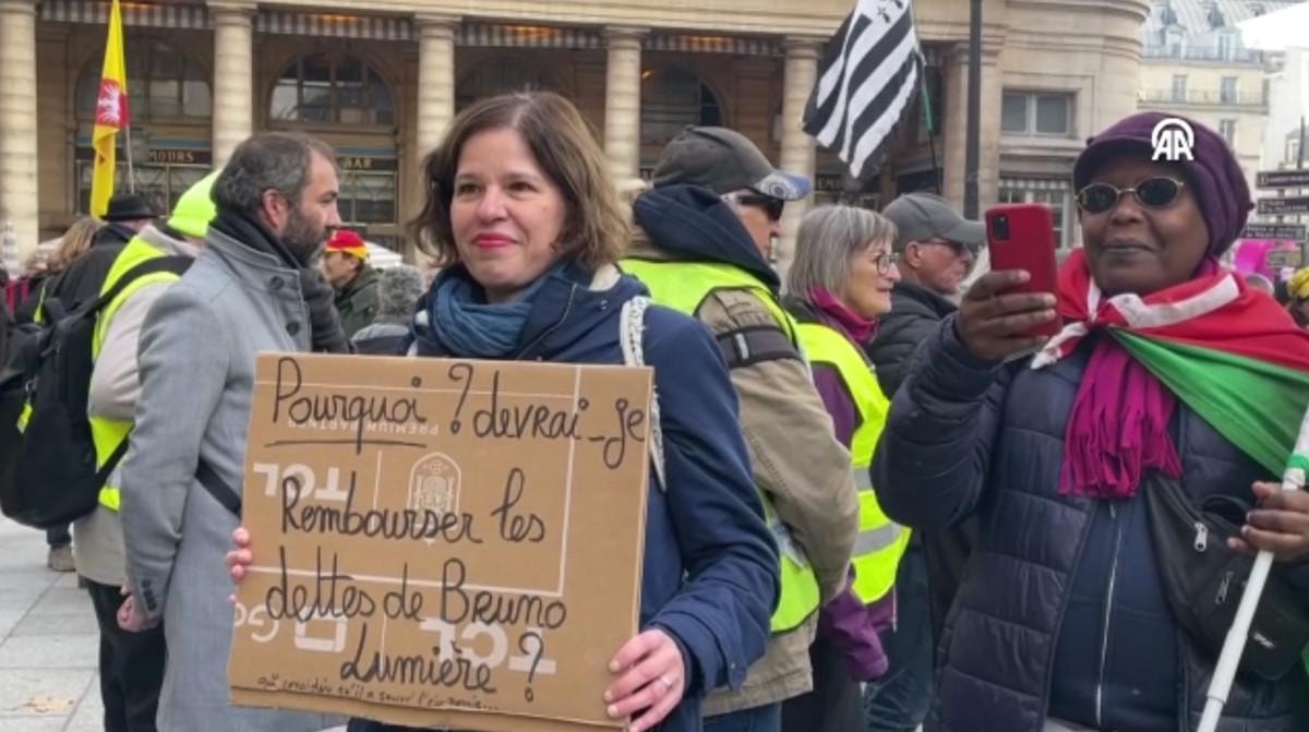 Omuzlarında Filistin bayrağı taşıyan gösterici Catherine Lassure ise, sarı yeleklilerin, Macron iktidarına ve bu iktidarın "topluma zararlı politikalarına" karşı protesto düzenlediklerini söyledi.
