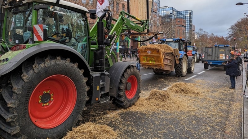 Ulusal basındaki haberlere göre onlarca çiftçi, dünden bu yana kentin güneyindeki A64 otoyolunda eylem yapıyor.