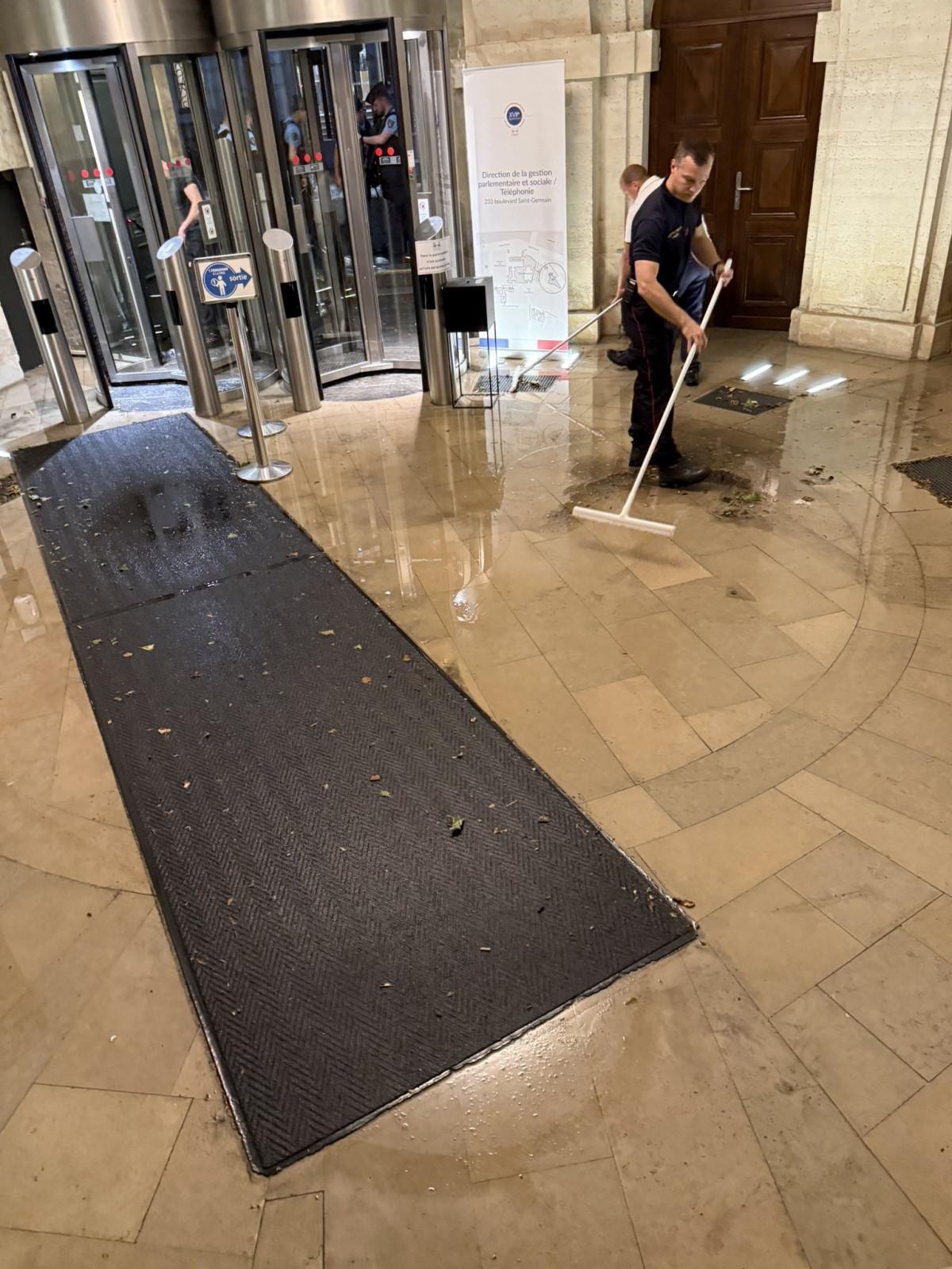 Lescure ise "Şimdi gördüm Sayın Başbakan. Meclis binasının su geçirmez olduğunu söylemişlerdi ancak görünüşe göre öyle değilmiş" dedi.