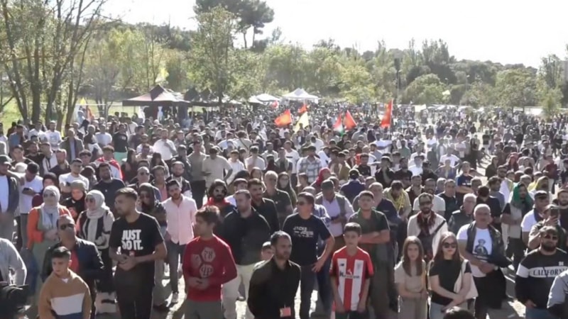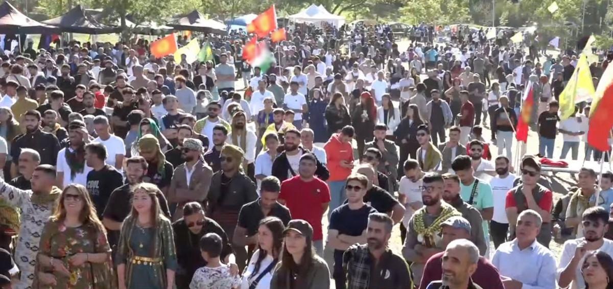 "Festival" adı altında gerçekleştirilen gösteride PKK yandaşları, terör örgütünün paçavralarını taşıdı ve elebaşı Abdullah Öcalan'ın serbest bırakılması yönünde sloganlar attı.