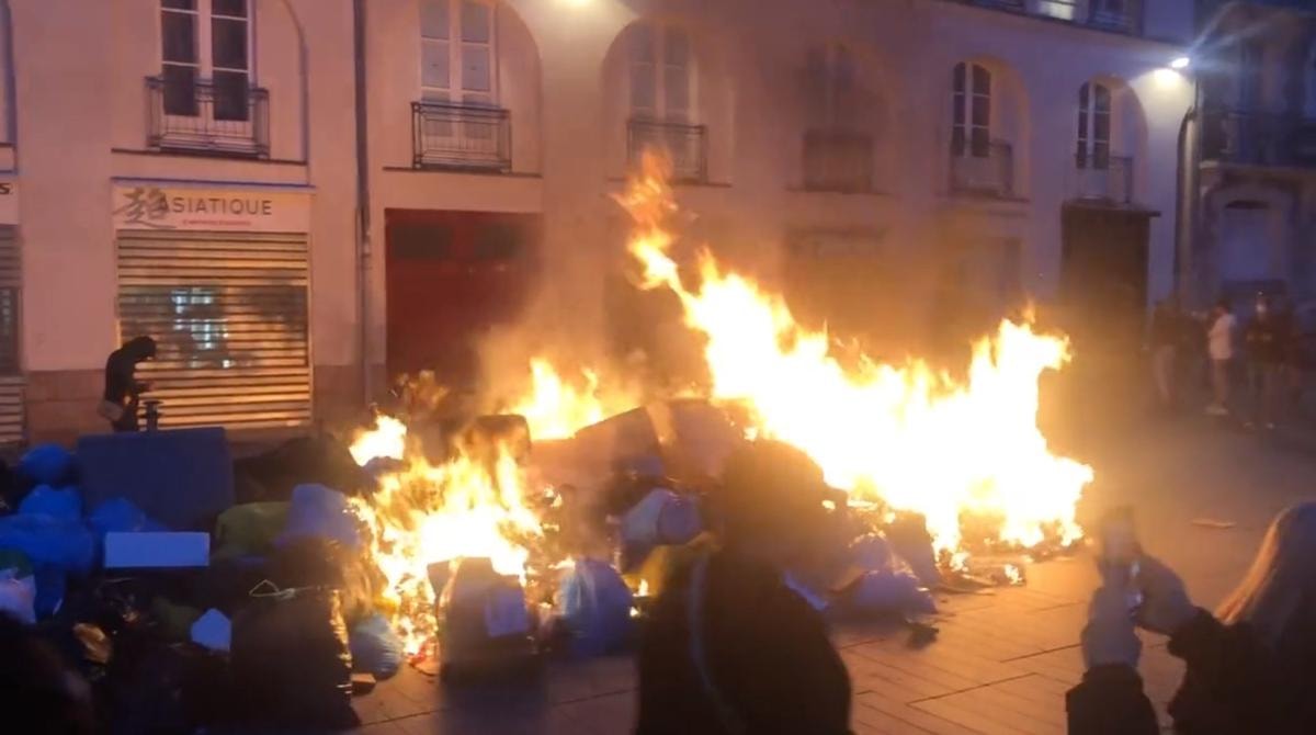 Göstericilerden bazıları Paris sokaklarındaki çöp ve çöp bidonlarını ateşe verdi.