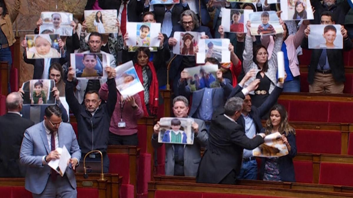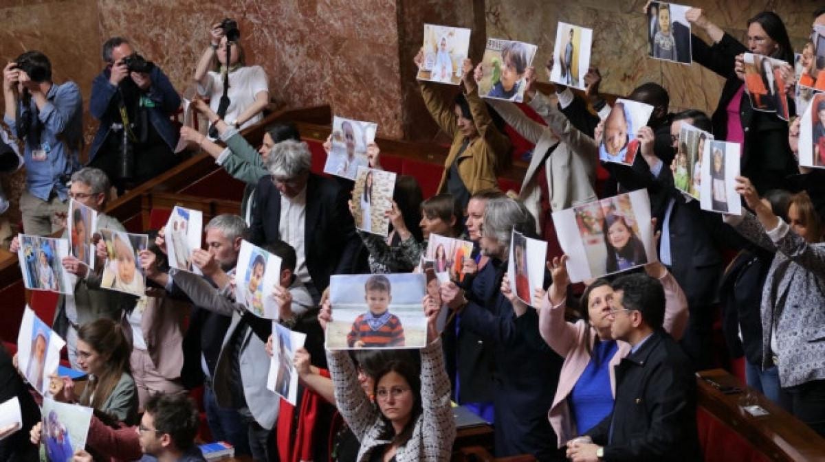 Aşırı solcu Boyun Eğmeyen Fransa (LFI) partisinin milletvekilleri, Gazze’de İsrail ordusunun saldırıları sonucu hayatını kaybeden çocukların fotoğraflarını içeren afişleri Meclis Genel Kurulu’nda açtı.