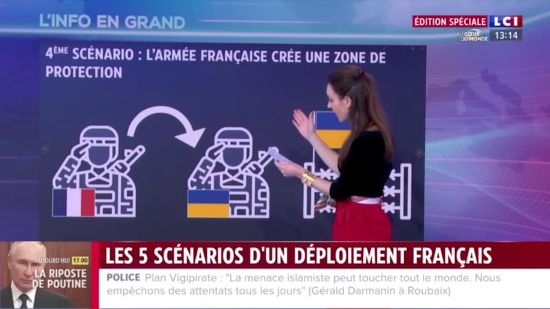 Fransa ordusu mensuplarının Ukrayna'da hangi şartlarda görev yapabileceği değerlendirildi. Fransız ve Rus askerleri arasındaki çatışma riski ile Üçüncü Dünya Savaşı tehlikesinden bahsedildi.