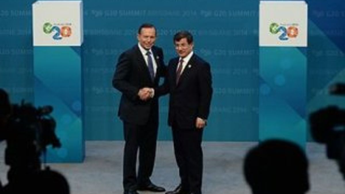 Başbakan Davutoğlu ile ABD Başkanı Obama, Rusya Devlet Başkanı Putin, İngiltere Başbakanı Cameron ve Almanya Başbakanı Merkel'in de aralarında bulunduğu liderler, Queensland Parlamento Binası'nda birlikte öğlen yemeği yedikten sonra, G20 Liderler Zirvesi'nin yapılacağı Brisbane Kongre Merkezi'ne geçti. Zirveye katılan liderler, ev sahibi Avustralya'nın Başbakanı Tony Abbott tarafından Kongre Merkezi'nde karşılandı. Başbakan Davutoğlu da zirve için geldiği Kongre Merkezi önünde, mevkidaşı Abbot ile tokalaştıktan sonra, zirvenin açılışı dolayısıyla düzenlenen kültürel etkinliklerin yapılacağı salona geçti.