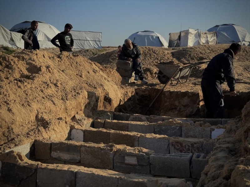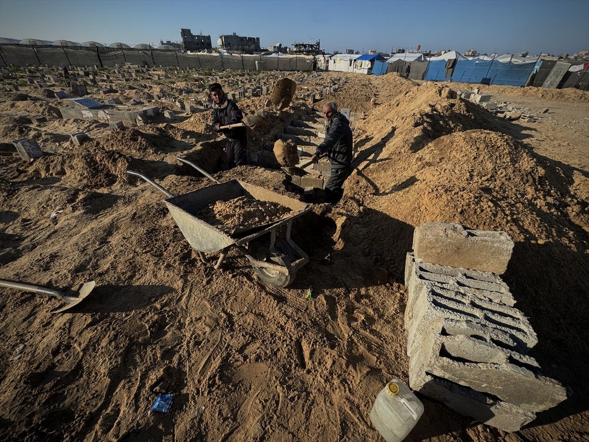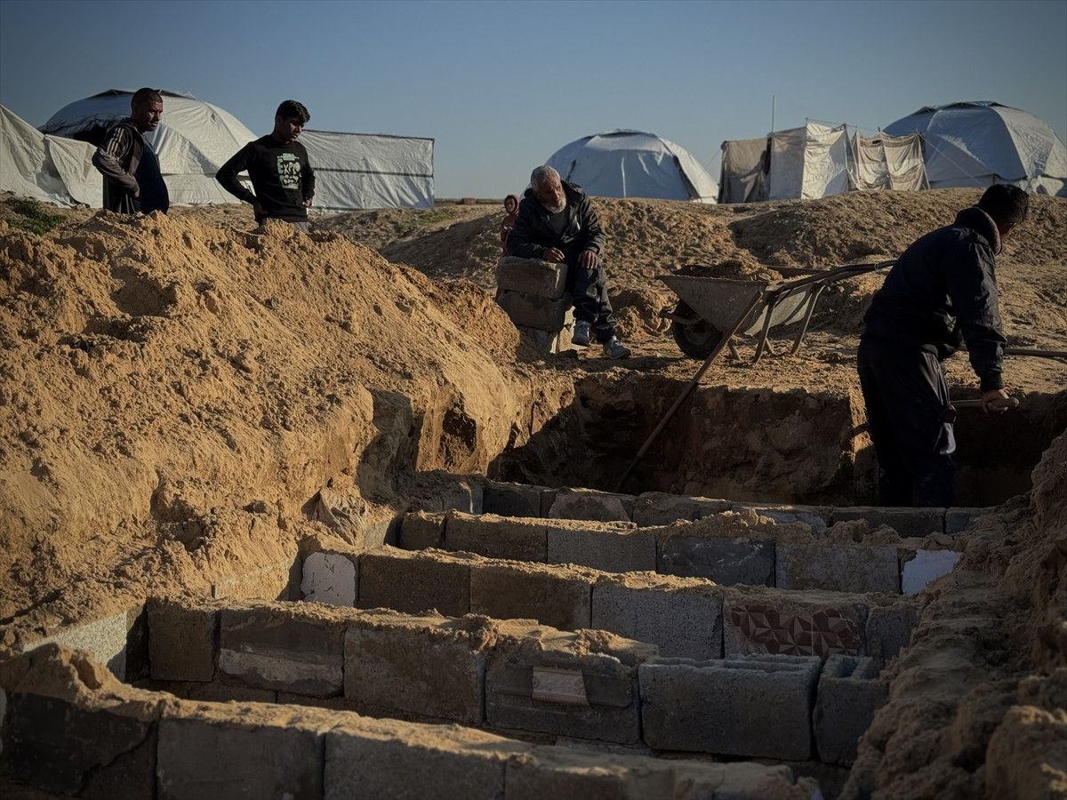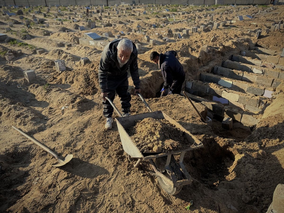 İsrail'in yoğun saldırıları devam ederken katliamlar, defin işlemleri, toplu mezarlar ve yeraltı mezarlarının hayatının bir parçası haline geldiğini söyleyen Ebu Hatab, artan can kayıpları ve yaşanan yer sıkıntısı nedeniyle yeraltı mezarlarında tek bir odaya 15 cenaze defnetmek zorunda kaldıklarını dile getirdi.