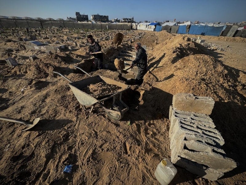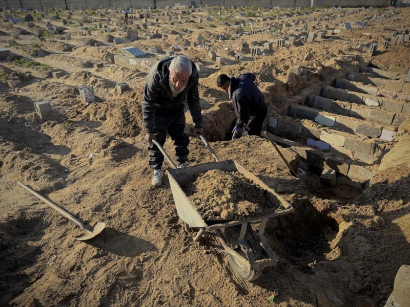 Han Yunus'ta son 2 yılda oğlu ve kardeşi dahil yaklaşık 18 bin kişiyi toprağa veren 65 yaşındaki mezarcı Yusuf Ebu Hatab, "Ruh halimi nasıl anlatayım. Hâlâ akıl sağlığımın yerinde olduğuna şükrediyorum" dedi.