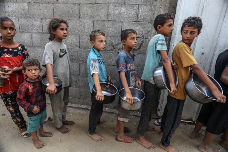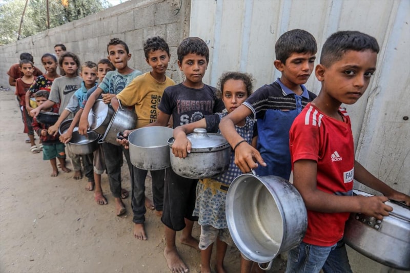 GAZZE'DE ÇOCUKLARDAN YEMEK SIRASI