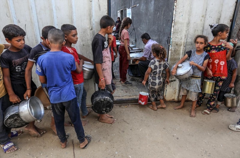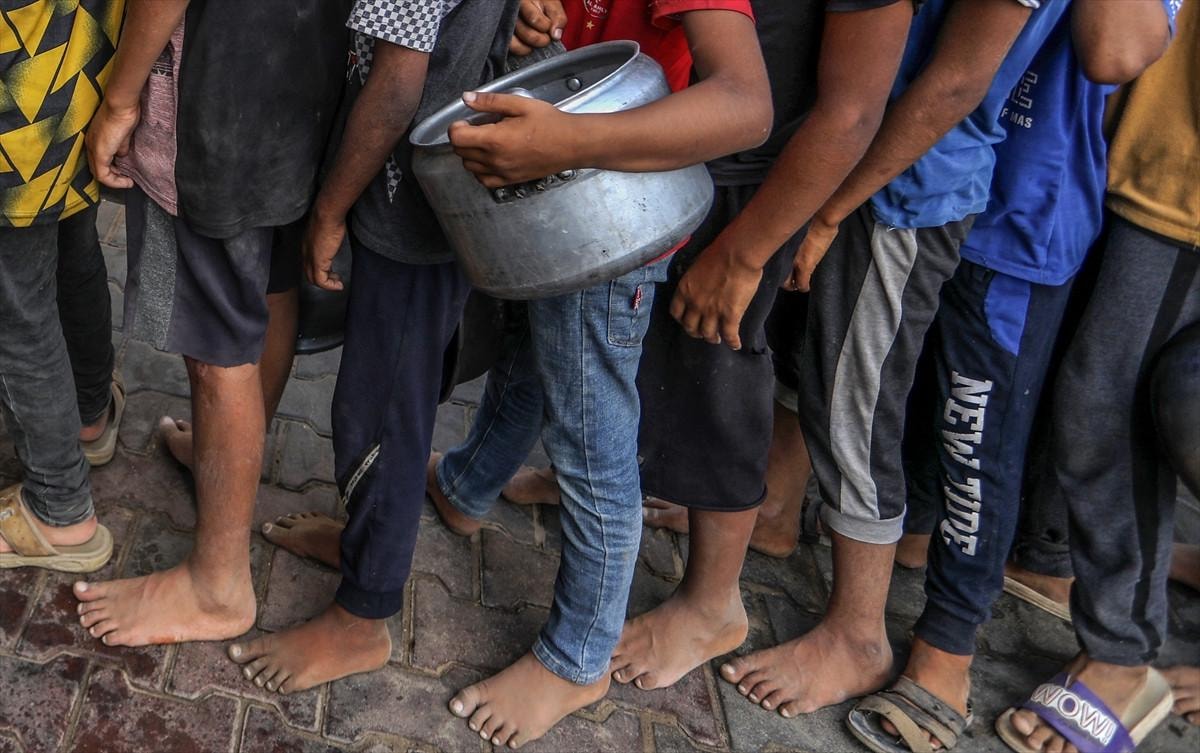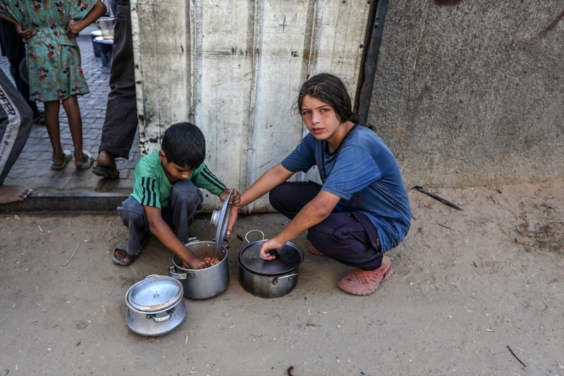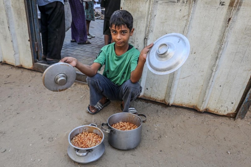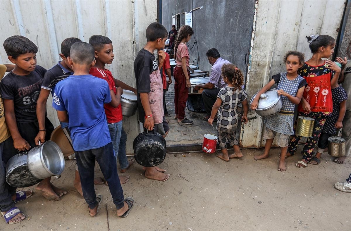 Gazze'deki gönüllüler, Deyr Belah kentine sığınan yerinden edilmiş Filistinliler için sıcak yemek dağıttı. Aralarında çocukların da bulunduğu Filistinliler dağıtılan yemeklerden alabilmek için kuyrukta beklerken gönüllüler yemekleri tencere ve kaplara doldurarak paylaştırdı.