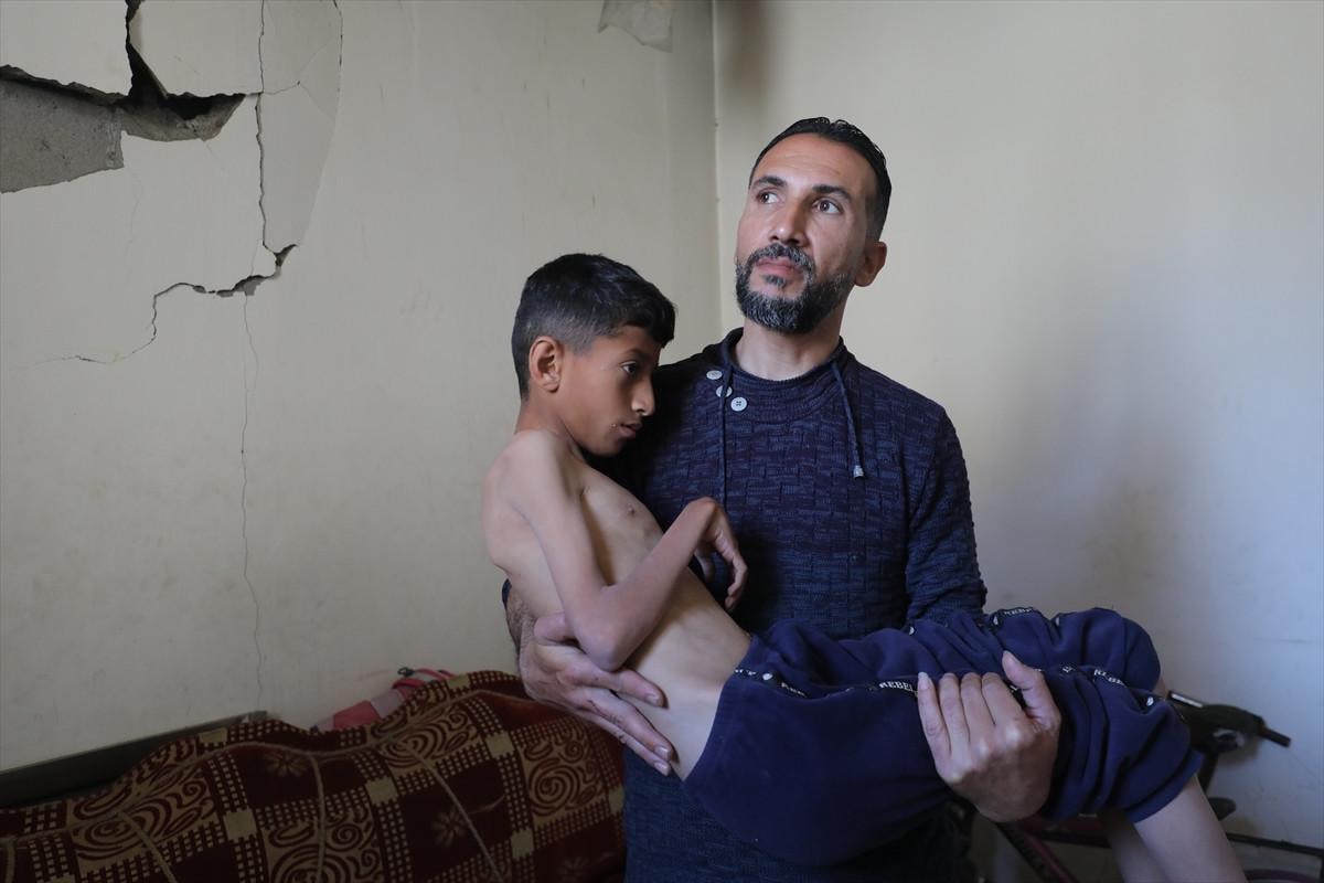 Açlık krizi ile mücadele eden binlerce Gazzeli çocuktan biri olan 13 yaşındaki Filistinli çocuk Mohammed Ali Henniye, yetersiz beslenmeye bağlı vücut zayıflığı sorunlarıyla Gazze Şeridi'nin orta kesimlerindeki Bureyc Mülteci Kampı'nda yaşam mücadelesi veriyor.