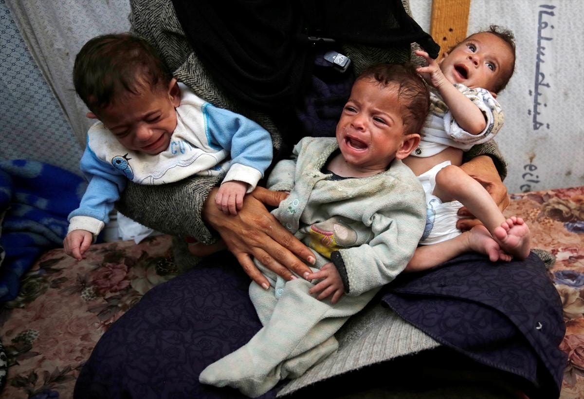 Gazze Şeridi'nin merkezindeki Nuseyrat Mülteci Kampı'na sığınan Filistinli anne Avad ve bebekleri, son derece zor insani koşullar altında hayatta kalma mücadelesi veriyor.