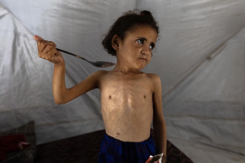 Şati Mülteci Kampı’nda yaşayan 2 yaşındaki Yazan Abu Ful’un babası “Doktora götürüyoruz, ‘Besleyin’ diyorlar. Ama nasıl? Yiyecek yok” diyerek çaresizliğini dile getirdi.